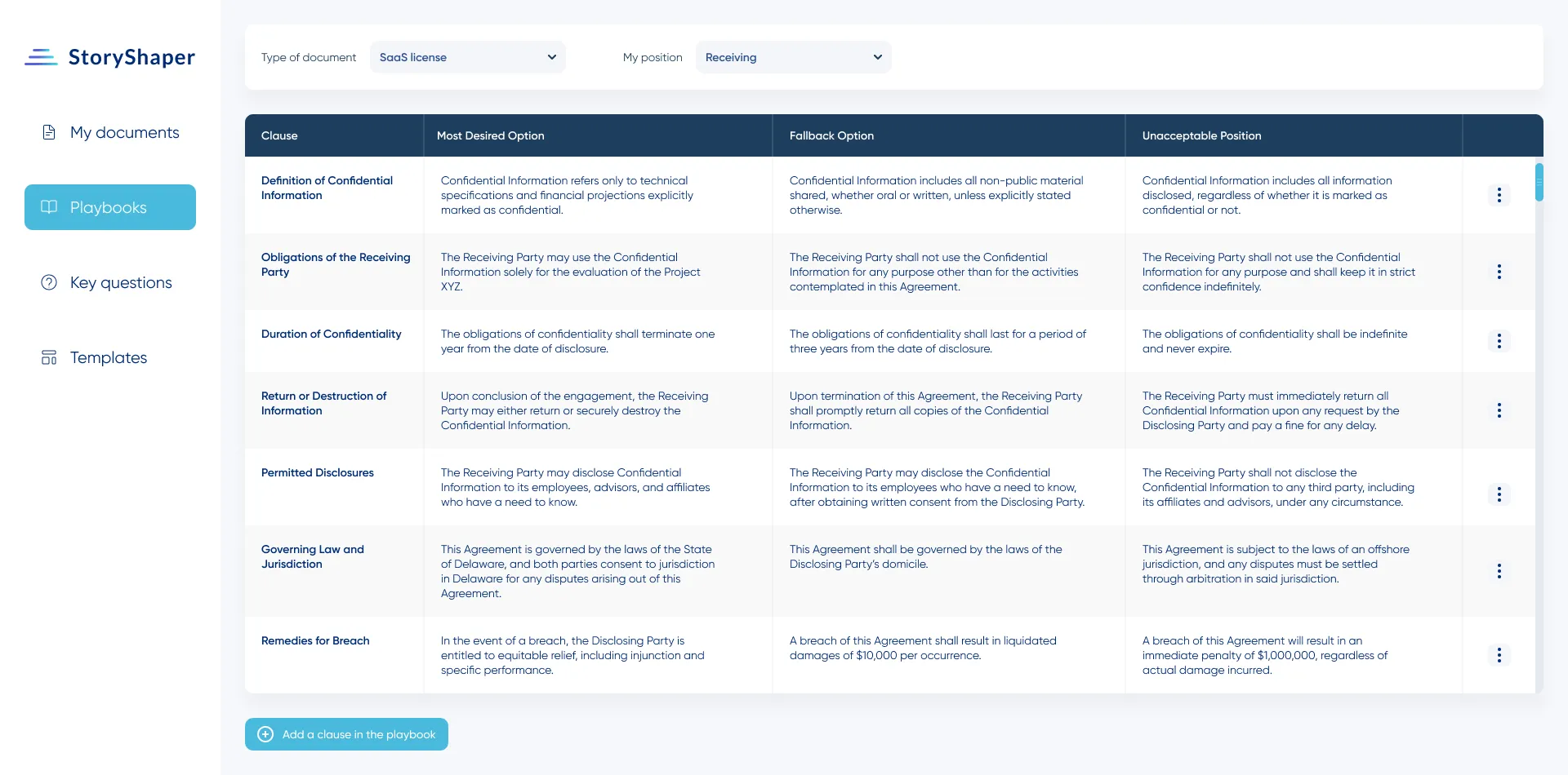 L'application web concentre la contrathèque (référentiel de contrats centralisé et partagé), vos clausiers et vos "questions clés", définies pour chaque type de contrat.