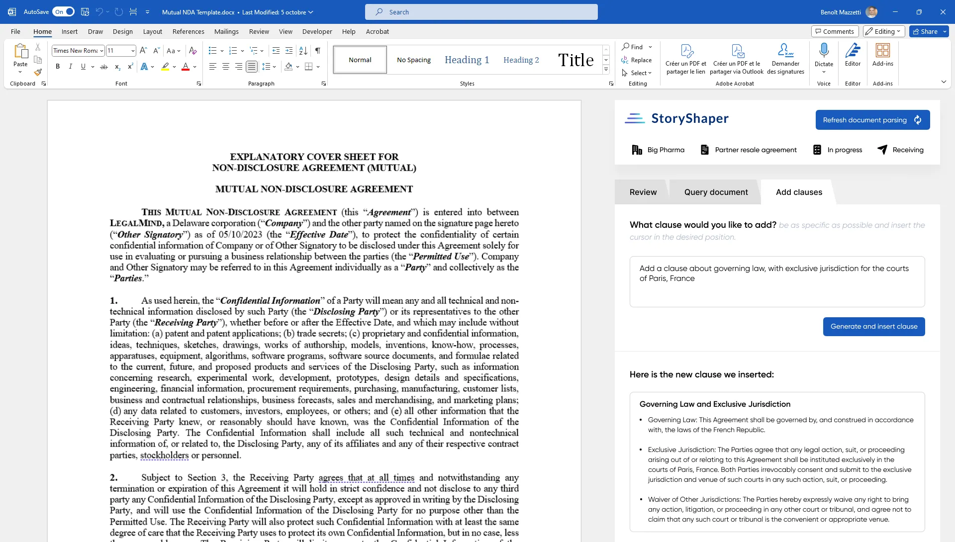 L’IA d’AutoLex génère de nouvelles clauses en cohérence avec vos intérêts